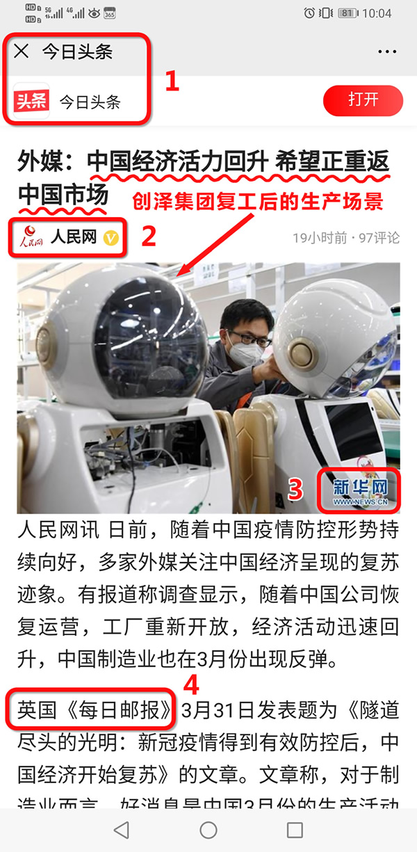 英國《每日郵報》3月31日發(fā)表題為《隧道盡頭的光明:新G疫情得到有效防控后,中國經(jīng)濟(jì)開始復(fù)蘇》的文章。文章稱,對于制造業(yè)而言,好消息是中國3月份的生產(chǎn)活動和新訂單升至50%以上。同時,服務(wù)業(yè)也有所反彈。