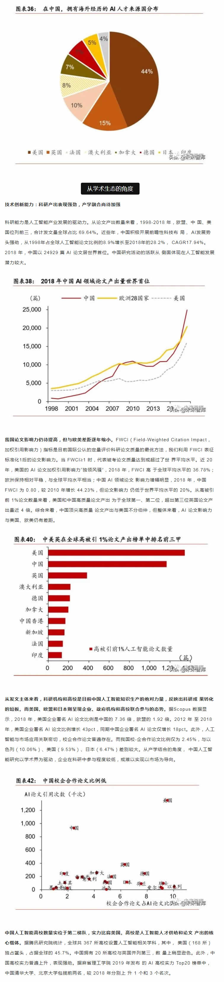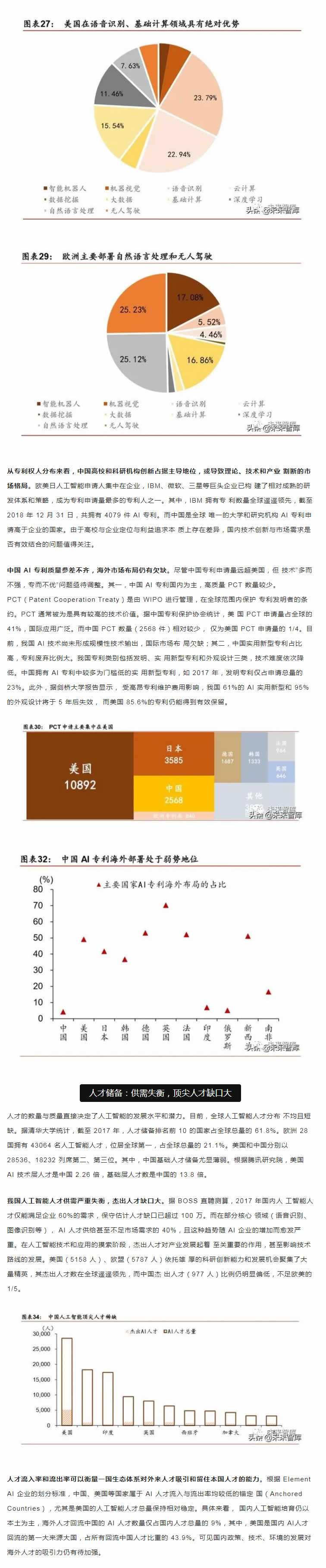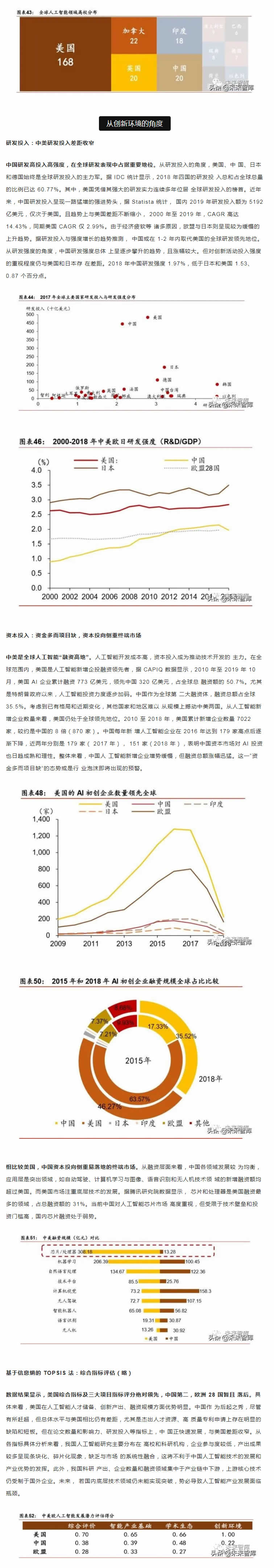 從中短期看,技術(shù)優(yōu)化、落地場(chǎng)景的開(kāi)拓和滲透是是主要的增長(zhǎng)點(diǎn);從長(zhǎng)期看,智能生 態(tài)體系建設(shè)才是彎道超車(chē)的必由之路。人工智能產(chǎn)業(yè)的核心競(jìng)爭(zhēng)力在于生態(tài)體系的建設(shè), 包括大數(shù)據(jù)、算法理論、底層技術(shù)、應(yīng)用生態(tài)、人才儲(chǔ)備等層面。而我國(guó)人工智能產(chǎn)業(yè)生 態(tài)和基礎(chǔ)設(shè)施建設(shè)正處于探索期,如何實(shí)現(xiàn)核心技術(shù)的突破和拓寬人工智能技術(shù)與社會(huì)經(jīng) 濟(jì)融合場(chǎng)景著力點(diǎn)在于人才儲(chǔ)備和持續(xù)的研發(fā)投入。從人才的角度,收窄技術(shù)差距的根本 在于優(yōu)化人的知識(shí)結(jié)構(gòu)和能力。當(dāng)前政策應(yīng)側(cè)重建立人才培養(yǎng)體系,為人工智能打造人才 資源池,尤其是在基礎(chǔ)學(xué)科L域突破人才瓶頸。同時(shí),打破“唯數(shù)量論”的科研評(píng)價(jià)和考 核體系,改變?nèi)瞬偶?lì)機(jī)制勢(shì)在必行。我國(guó)人工智能專利申請(qǐng)和科研產(chǎn)出數(shù)量L先, 但質(zhì)量堪憂。唯有從源頭改變?cè)u(píng)價(jià)機(jī)制,才能扭轉(zhuǎn)“量多而質(zhì)優(yōu)”的問(wèn)題。從研發(fā)的角度, 企業(yè)技術(shù)優(yōu)化和創(chuàng)新能力是解決產(chǎn)業(yè)痛點(diǎn)的關(guān)鍵。基礎(chǔ)研究的投入周期長(zhǎng)、不確定性大、 和風(fēng)險(xiǎn)G特點(diǎn)決定了其難以短期內(nèi)獲得投資回報(bào),但基礎(chǔ)L域的突破將為經(jīng)濟(jì)帶來(lái)長(zhǎng)期和 廣泛的溢出效應(yīng),因此,國(guó)內(nèi)更應(yīng)關(guān)注底層技術(shù)的研發(fā)投入,扭轉(zhuǎn)傳統(tǒng)技術(shù)路徑,顛覆核 心技術(shù)受制于人的被動(dòng)局面。此外,人工智能在賦能機(jī)器模擬人類進(jìn)行決策的同時(shí)產(chǎn)生的 倫理道德、隱私保護(hù)和社會(huì)安全問(wèn)題值得關(guān)注。由于法律法規(guī)存在滯后性,尚無(wú)法對(duì)人工 智能技術(shù)進(jìn)行有效監(jiān)管。我國(guó)應(yīng)加快人工智能倫理研究,及早識(shí)別人工智能治理風(fēng)險(xiǎn)。