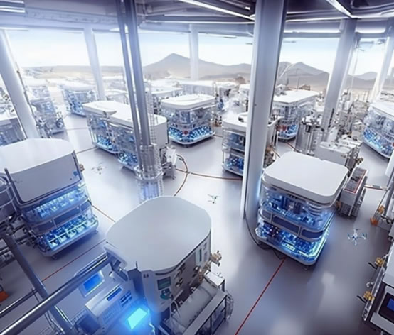 未來(lái)云端實(shí)驗(yàn)室可以被建設(shè)在太陽(yáng)能/風(fēng)能充足的荒漠中,科研人員可以從全世界任意一個(gè)地方控制云端實(shí)驗(yàn)室。園區(qū)內(nèi)的兩大主體——數(shù)據(jù)流和物質(zhì)流,將分別由互聯(lián)的AI網(wǎng)絡(luò)和機(jī)器人網(wǎng)絡(luò)負(fù)責(zé)運(yùn)載。(本圖由MidJourney + Adobe Firefly生成)