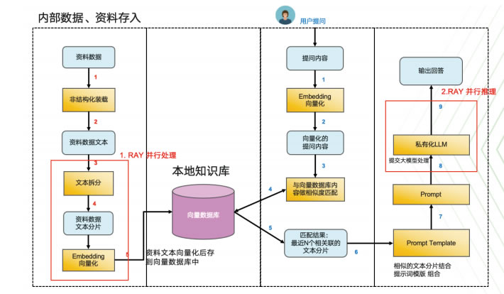核心層:提供 Embedding Ray Service 和QA Ray Service 兩大服務(wù),都基于Ray的分布式計算框架,多組服務(wù)并行。
