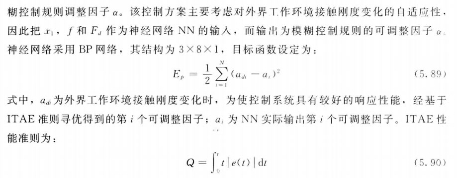 模糊控制是應用Z廣的一種智能控制,它具有多種結構形式,如 PID 模糊控制、自組 織模糊控制、自校正模糊控制、自學習模糊控制、專家模糊控制等。其中,自校正模糊控制屬于自適應模糊控制。下面提出一種由神經網絡訓練模糊控制規則的自適應模糊控制 器,并把它應用于附加力外環的機器人力/位置混合控制。
