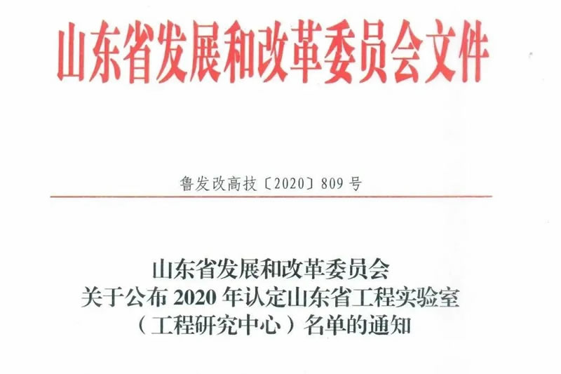 山東省發展改革委發布《關于公布2020年認定山東省工程實驗室(工程研究中心)名單的通知》(魯發改G技〔2020〕809號)