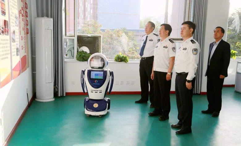 警察迎賓機器人具有自主問候、語音交互、遠程遙控、人臉識別等功能,可以通過移動應用程序客戶端獨立歡迎客人,還可以讓機器人按照主人的指令行走巡邏